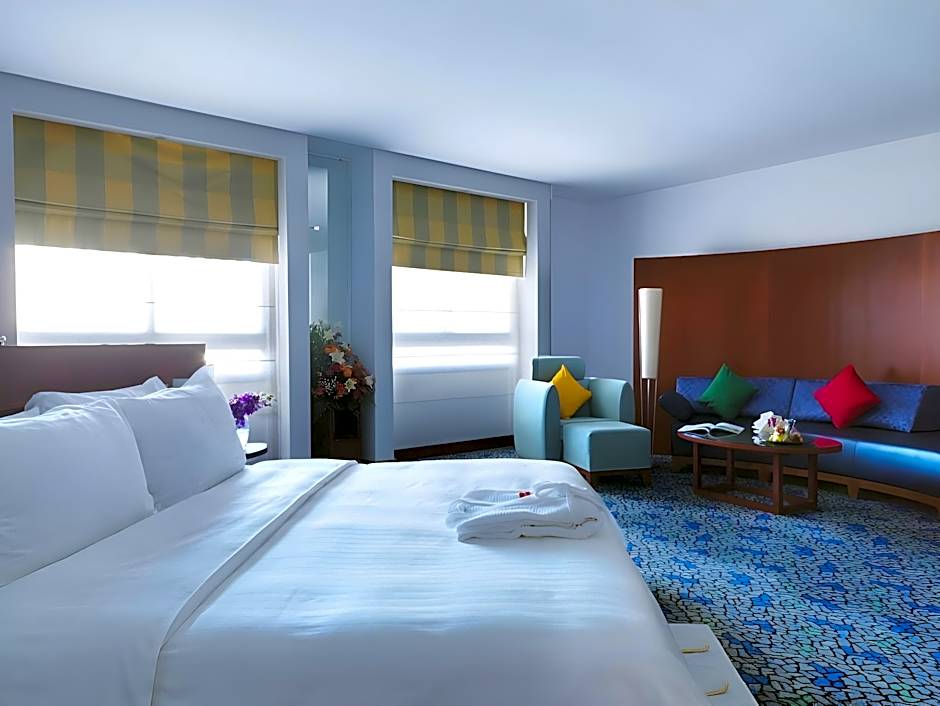 +/- 60 square yards - Complimentary access to Executive Lounge - Breakfast included - Free WiFi - Spacious open plan bedroom and living area - Upgraded welcome amenities - Nespresso Machine - Free bottled water - Free newspaper - Professional hairdryer, bathrobe & slippers - Upgraded Toiletries - In-room safe - Iron and ironing board - Excluding 5% Municipality Tax and additional VAT of 15%.